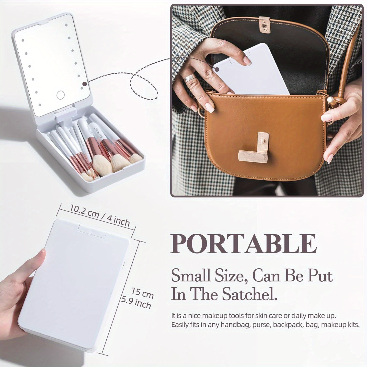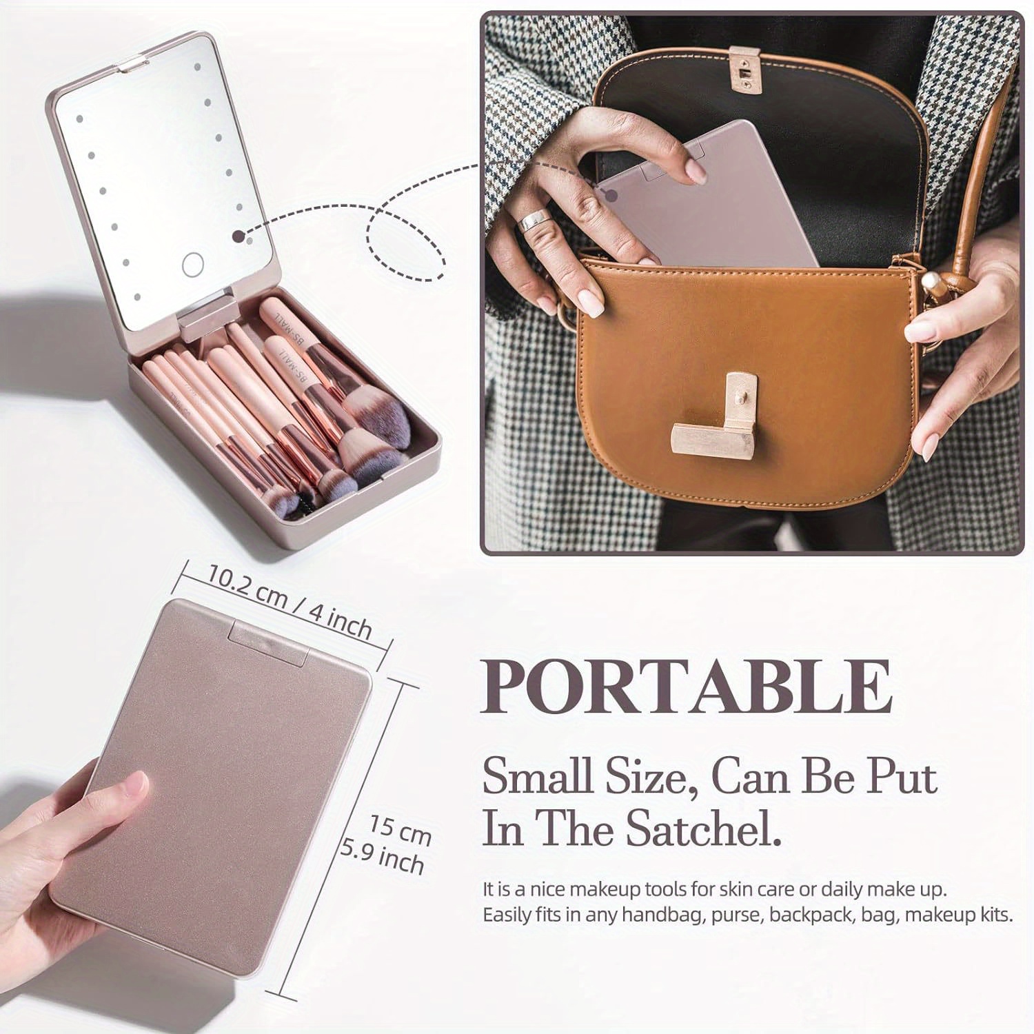 14-Piece Mini Travel Makeup Brush Set with LED Light Mirror – Portable Foundation, Powder, Concealers, Eye Shadows Makeup Kit – Compact, Travel-Friendly, Easy-to-Use, Soft Bristles, Multi-Functional
