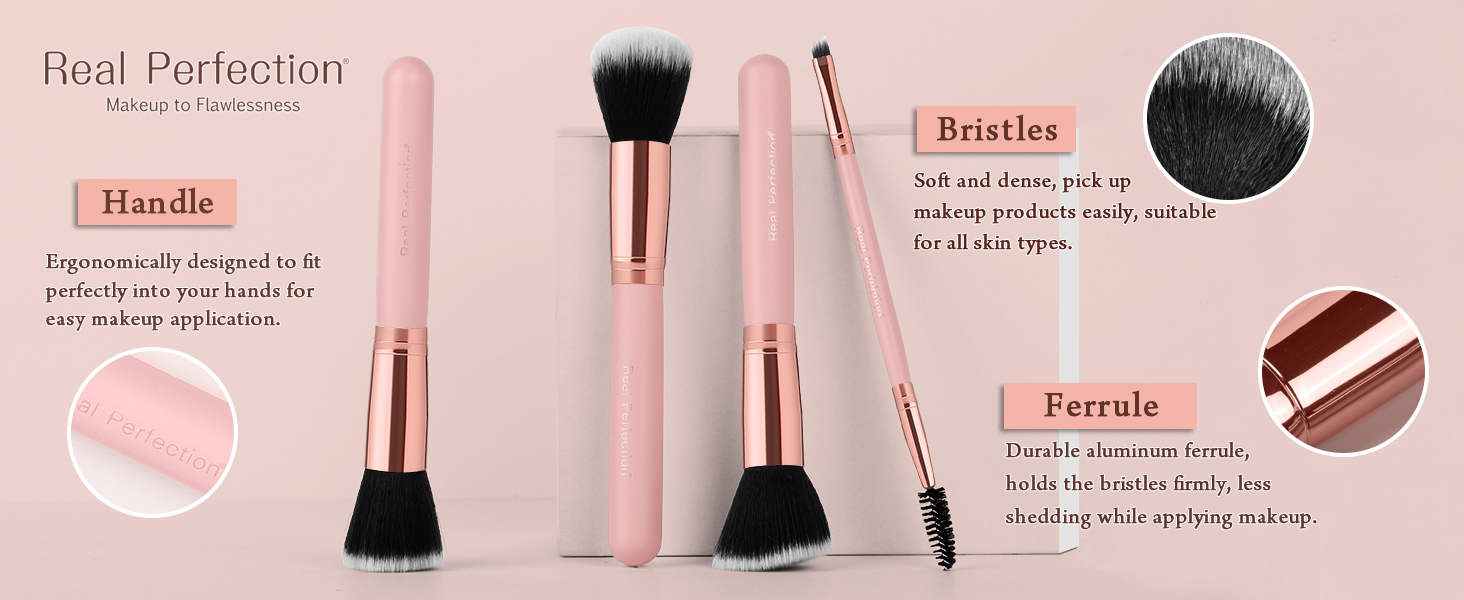- 零殘忍的化妝刷:柔軟的合成刷毛、高品質的鋁製套圈和木製手柄,在化妝時易於握住和控制。