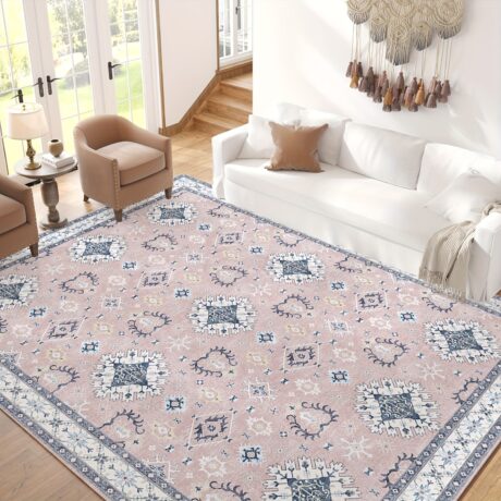 1pc Vintage Area Rug Tribal Rug, Washable Rug Geometric Rug, Non Slip Oriental Rug Thin Boho Rug Floor Cover Farmhouse Rug Carpet For Kitchen Living Room Bedroom Dining Room